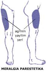 Kalçanın yan tarafına ve önde kasığa doğru uzanan ve dolaştığı bölgede duyu almamızı sağlayan bir sinir vardır. Bu derinin altında yer alan yüzeysel sinirin adı lateral femoral kutenoz sinirdir. Bu sinir, kasık bağı olarak da adlandırabileceğimiz inguinal ligamentin altından geçerken bir baskı altında kalırsa, kalça yanında ve kasıktan bacakların iç tarafına doğru ara sıra yayılan bir tür yanma, aşırı duyarlılık ve kimi zaman da uyuşukluk hissi oluşabilir. Bacağını açarak arkaya attığında, uzun süre ayakta kaldığı ve yürüdüğünde hastanın ağrıları artabilir.